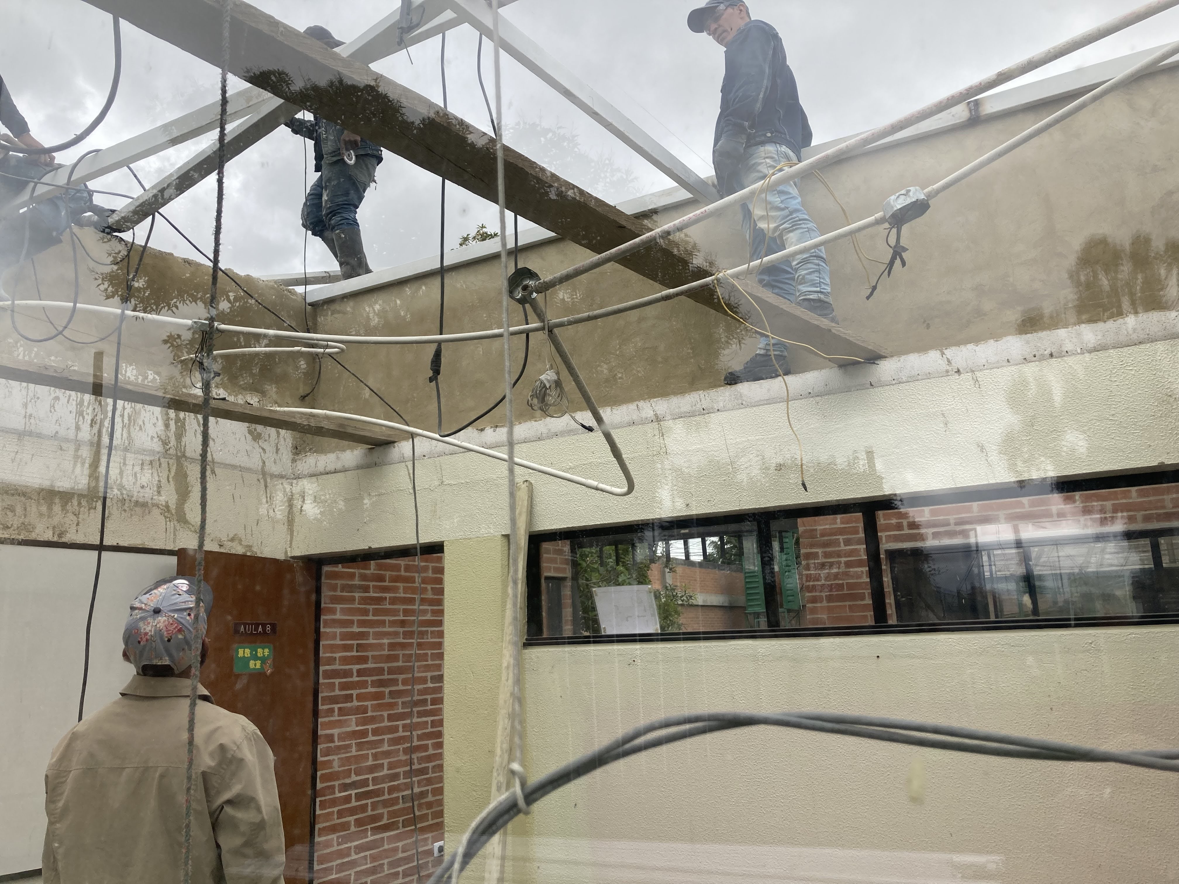学校の屋根工事が本格的に始まっています。2学期新しく生まれ変わった教室で学習するのが楽しみです。