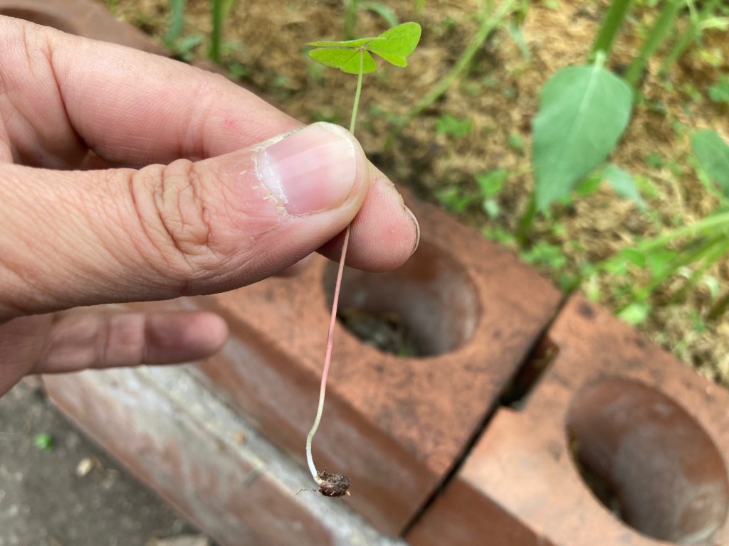 今日の草抜きでも「先生、当たりが出た。」という子ども達。雑草を抜く時に、これ以上生えてこないように、種ごとに採るように頑張っています。