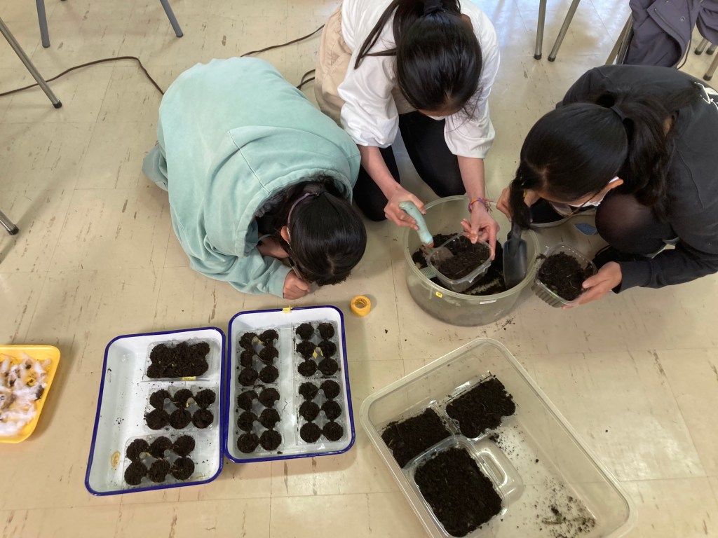 ボゴタは1年を通して気温の変化が少ないので種まきがいつでもできます。しかし、朝晩の最低気温は6,7度くらいになり、1学期後半に、種から植えた時の発芽率が良くなかったです。