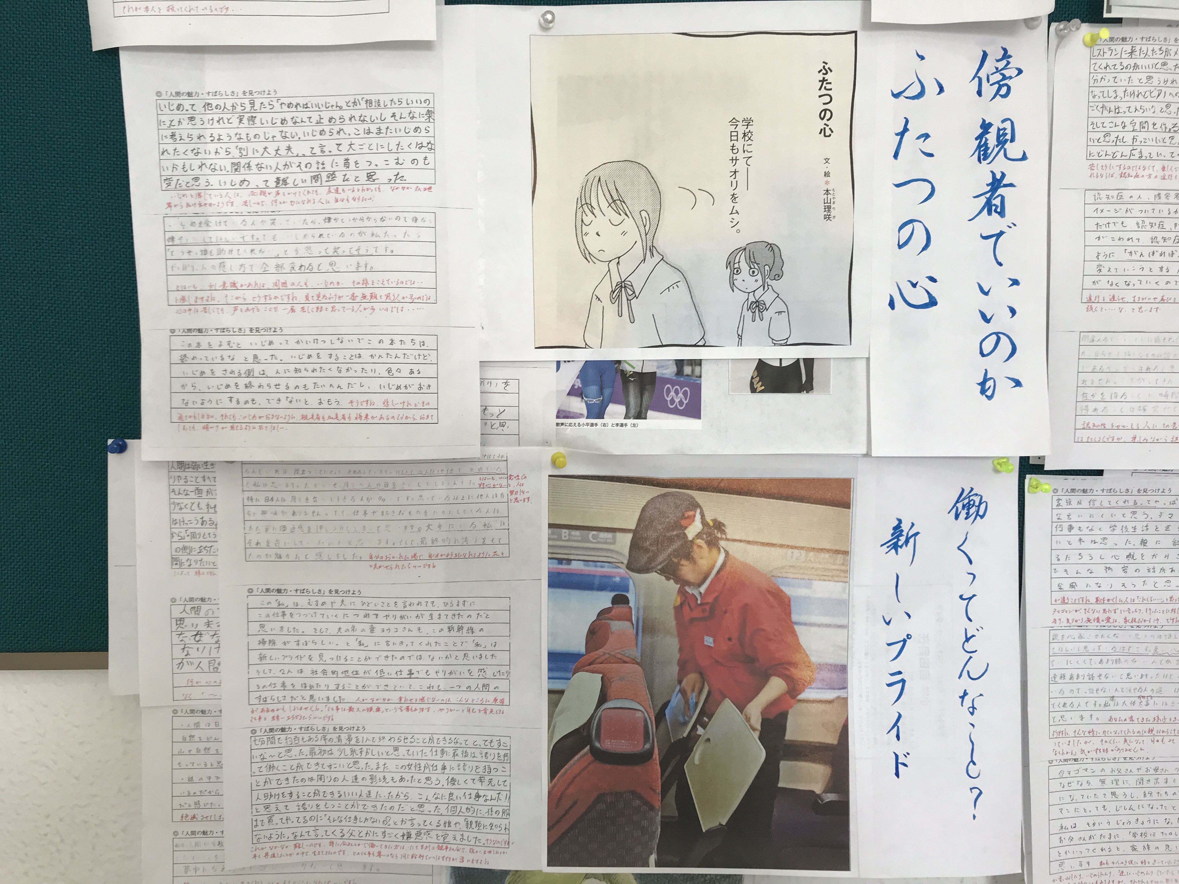 学校内には学びの足跡があふれています。「こんな勉強しているんだ!」「自分も来年、この勉強をするのか!」「○○さんの作品、かわいい!」掲示板の前で立ち止まり、お互いの学びを見合っています。学校全体で学びへの好奇心が高まるようこれからも様々な工夫をこらしていきます。