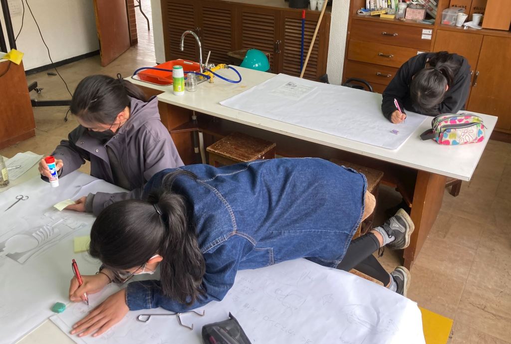 11月19日の学習発表会に向けて、教科や学年で取組が進んでいます。中学部では、理科で学んだことの実験ブースを出して、児童や保護者の方に体験してもらおうと計画しています。そのブースの背面に貼って、実験の説明や解説をするための貼りものを制作しています。
