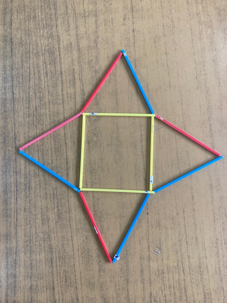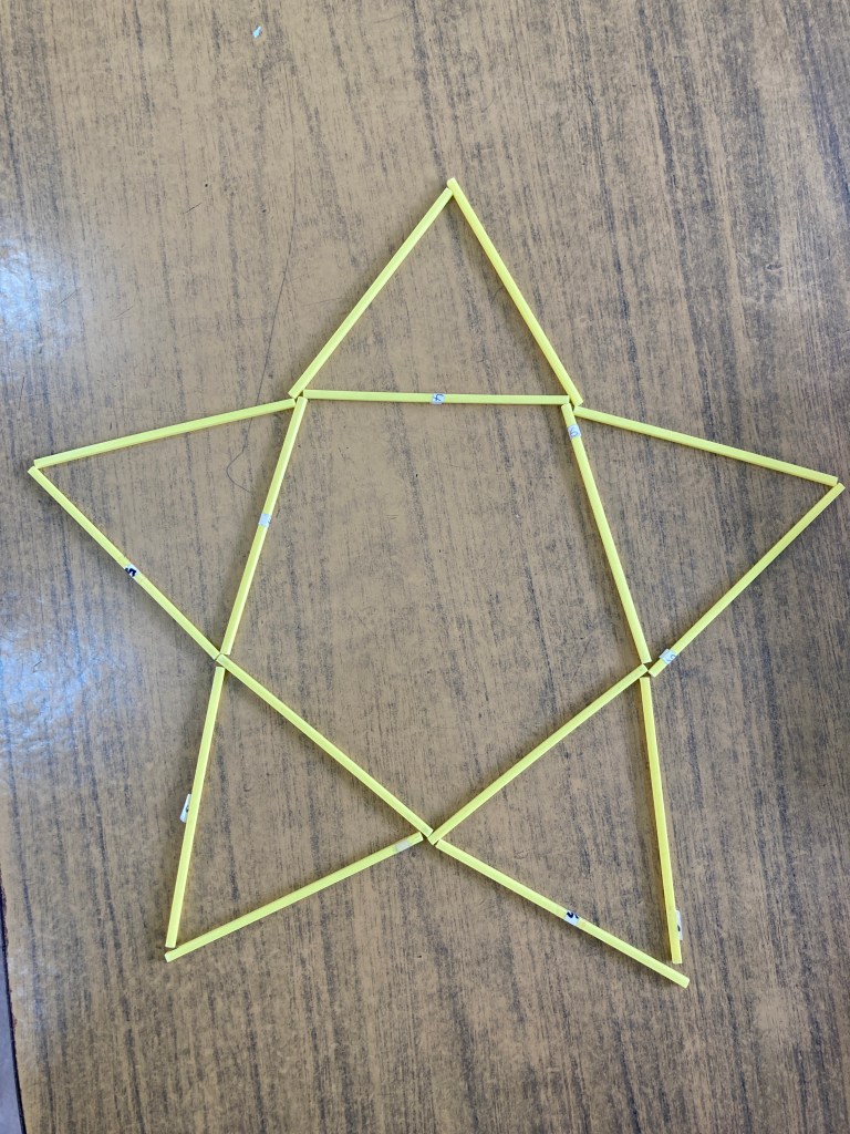 1年生最後の算数科では「かたちづくり」の学習を行っています。この学習は平面図形の特徴を捉えることが主なねらいです。形、長さ、辺の数などを図形の操作活動を通して体験的に学んでいます。子どもの発想は豊かで、様々な作品が完成しました!