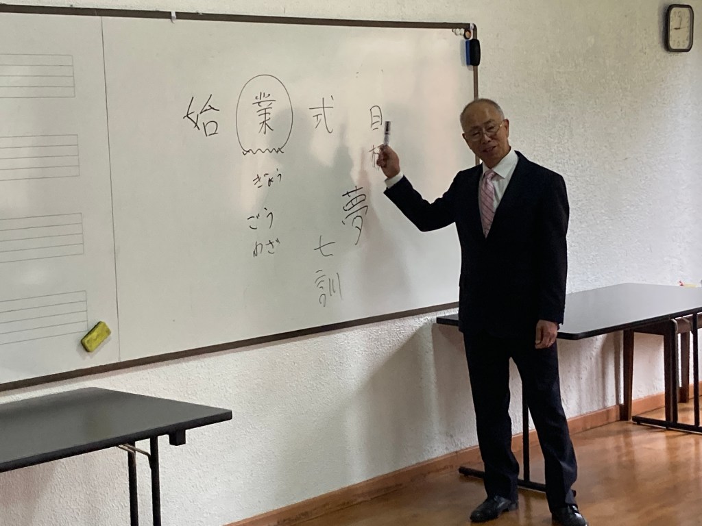 式の中では、校長先生が講話をしました。「始業式の『業』には、「なすべきこと」という意味があり、目標や夢をもって1年間を過ごしましょう。」という話をされました。