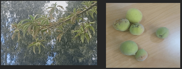 このスモモの木は、ボゴタの環境庁の指示に従って植えられたものです。シロアリの被害で根元が駄目になっていたユーカリの木を切った時に、「木を1本切ったら木の苗を3本植える」約束に基づいたものです。約10年たって実が付くようになりました。