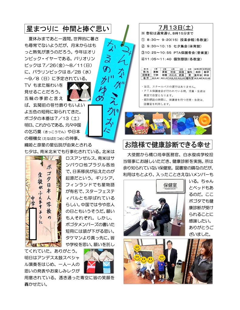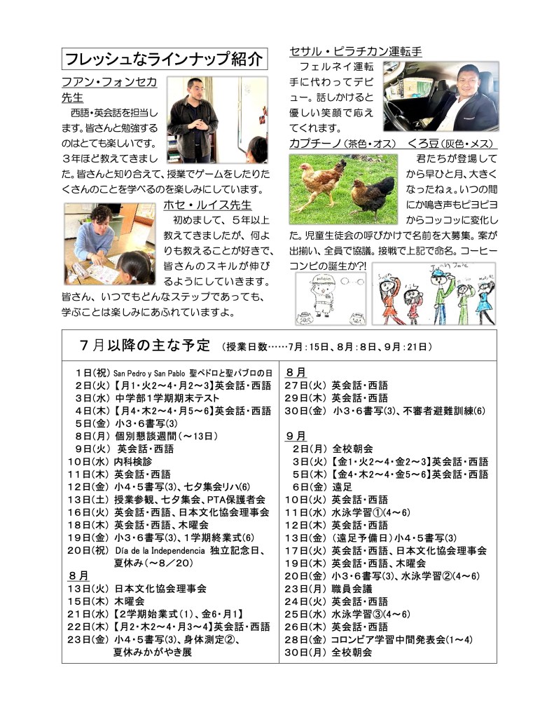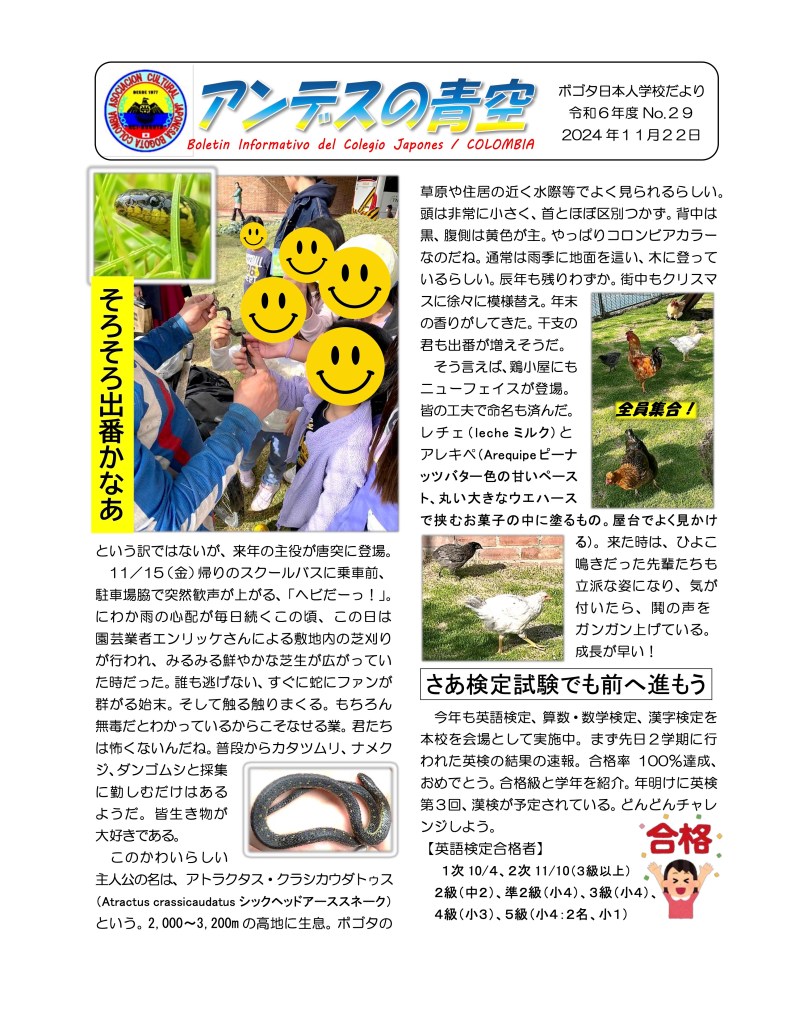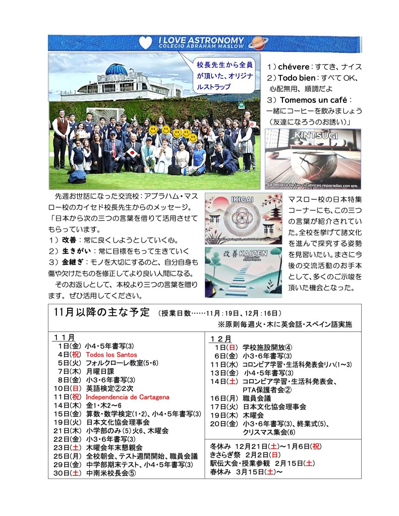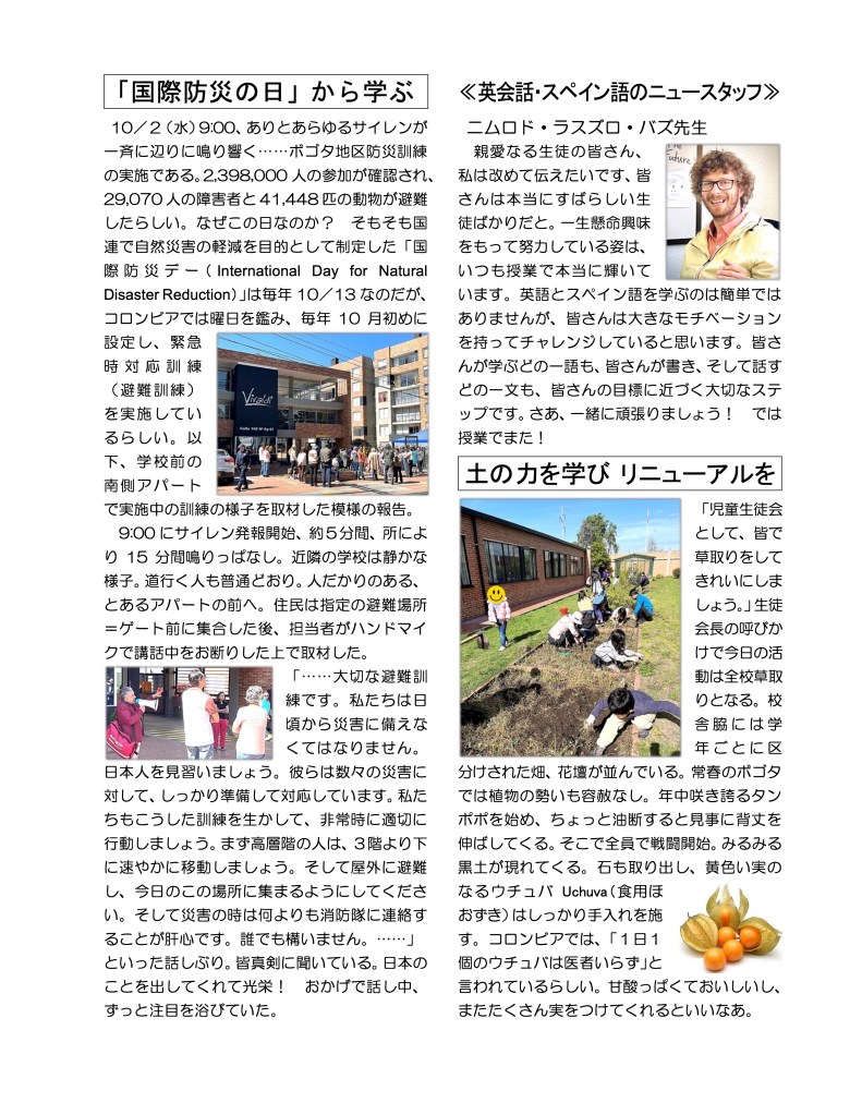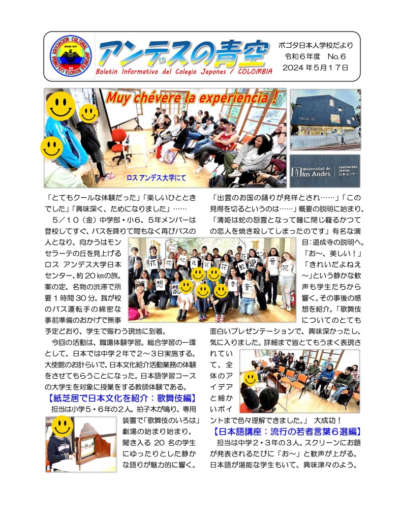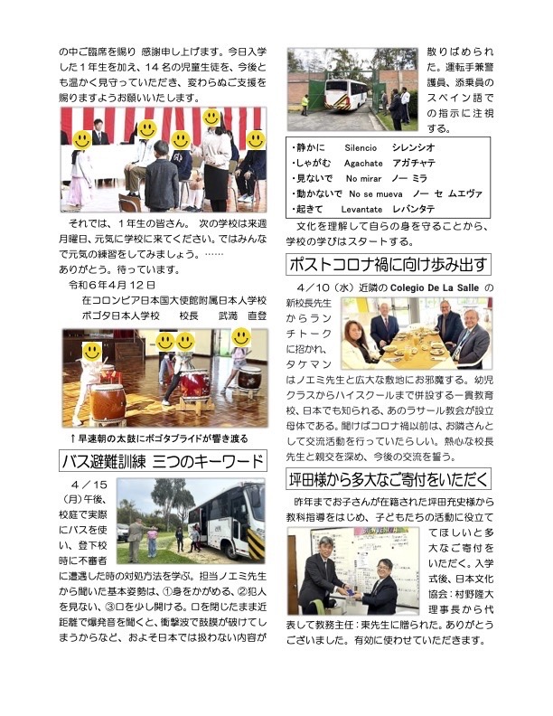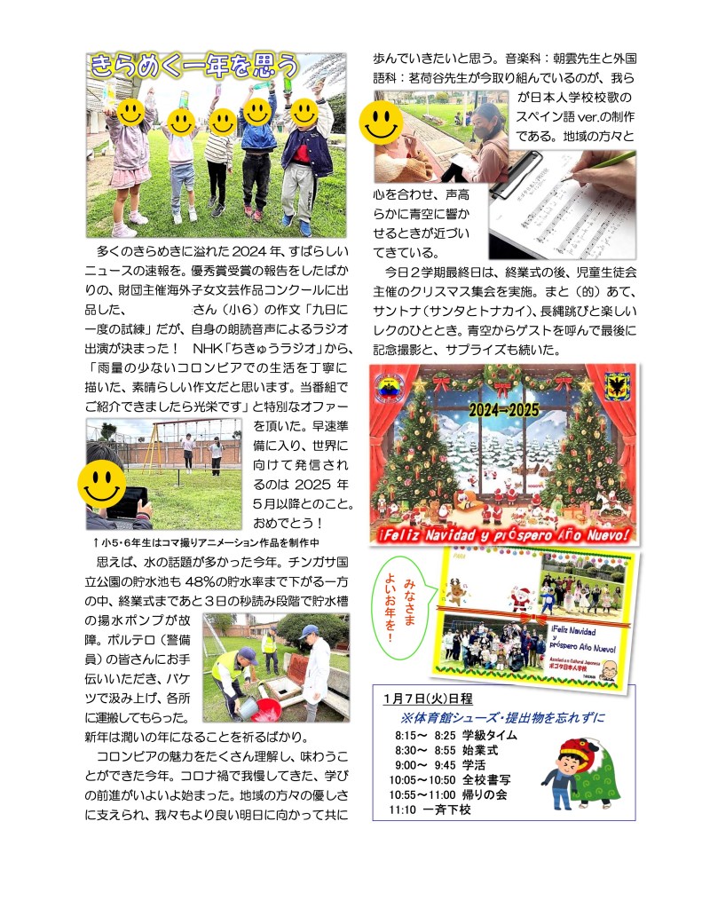 ボゴタ日本人学校の一日の様子