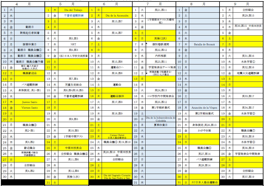 ボゴタ日本人学校の一日の様子